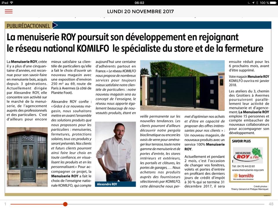 Notre Société Menuiserie ROY & FILS a été prise comme exemple dans un article de le journal la Montagne :